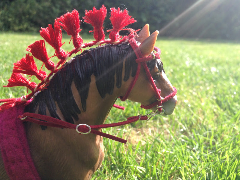Nagrodą będzie ręcznie robione przeze mnie ogłowie (jeszcze nie wiem jaki typ, możliwe że dam wam wybór) oraz prezenterka z uwiązem plecionym, obie rzeczy na konia wielkości Schleich. Paski ogłowia będą regulowane, w zestawie wodze także regulowanej długości. Prezenterka na wymiar konkretnej figurki, ale ze względu na łańcuszek powinna pasować na wiele modeli. Gdy wybiorę zwycięzcę pokażę możliwe kolory do wyboru (muszę się zaopatrzyć w nowe materiały).Najprawdopodobniej ocena nie będzie należała tylko do mnie, poproszę na pewno was o komentarze, sama przyznam punkty i może poproszę kogoś nieinteresującego się figurkami o ocenę jako laika (myślę że mój narzeczony się zgodzi ;)).